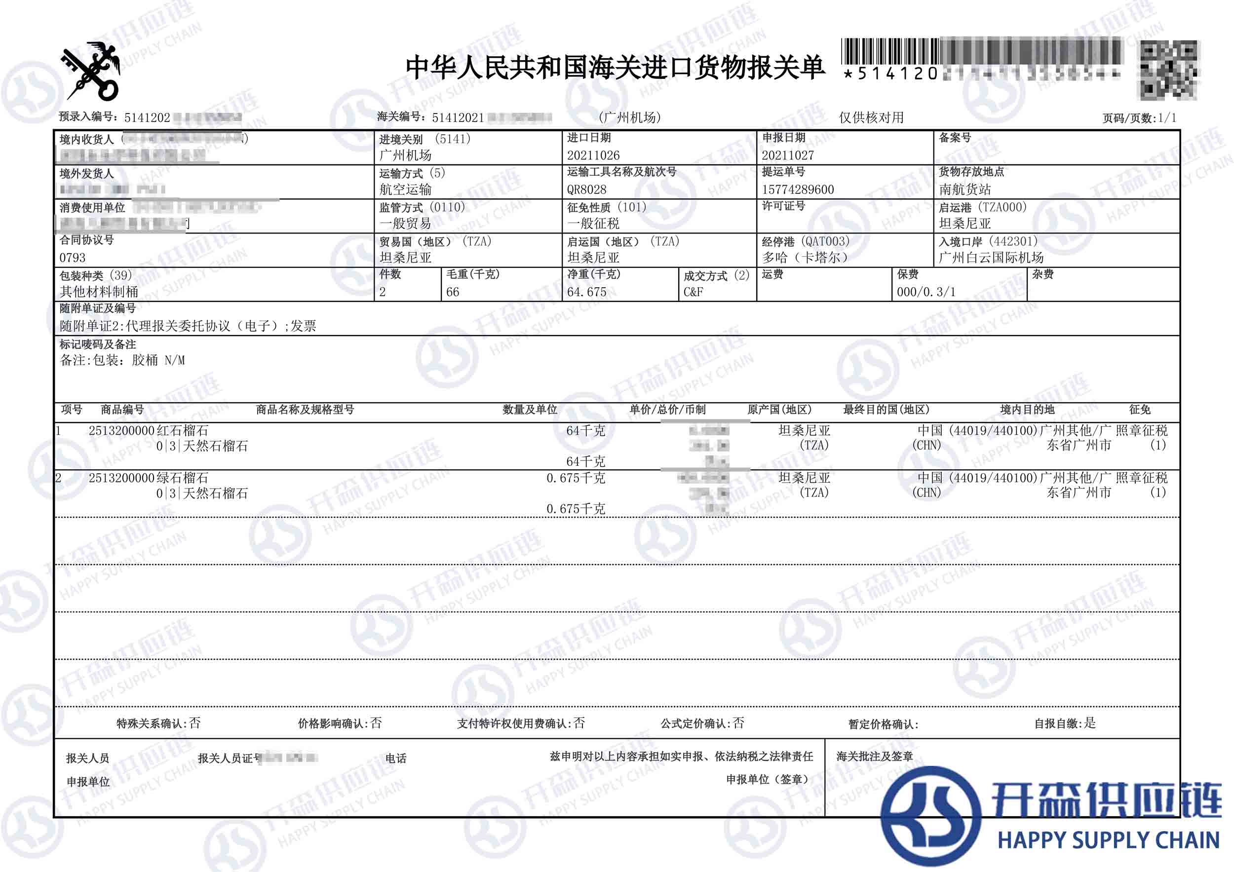 一、坦桑尼亞石榴石進(jìn)口報(bào)關(guān)代理案例詳情