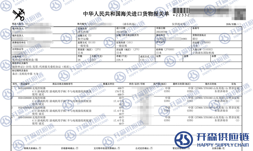 一、日本PS5索尼游戲機(jī)進(jìn)口報關(guān)代理案例詳情