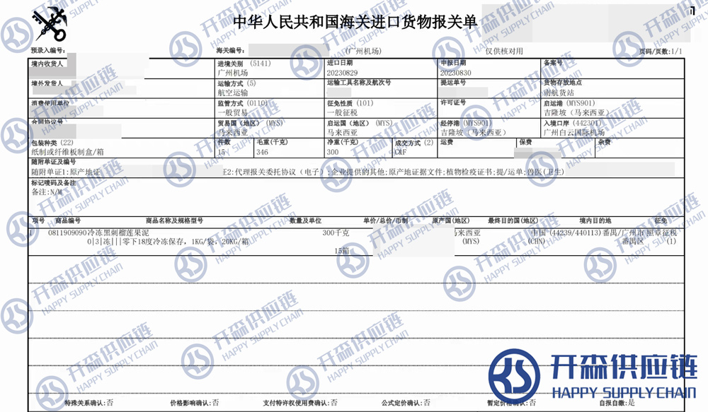 【本文結語】 上述就是馬來西亞冷凍榴蓮果泥進口報關代理服務【清關案例】的全部內容,希望能對您有所幫助,如有榴蓮進口報關上任何疑問及問題可隨時在線聯系我們或撥打 18002611553,開森供應鏈擁有豐富的榴蓮進口報關操作經驗及案例,10余年進口經驗為您所用,各類進口疑難都能為您一一解答及協助快速處理解決!